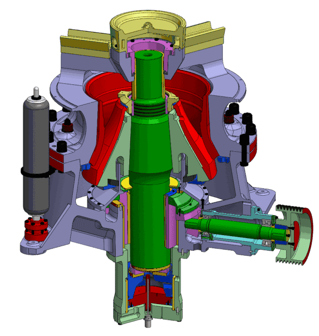 ▲单缸(上)和多缸(下)液压圆锥破动态图